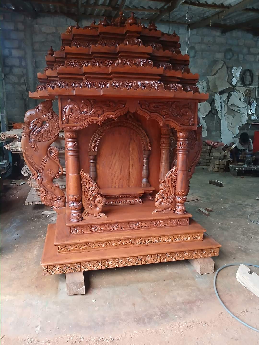 Hand Painted Wooden Temple with Emboss Painting and Pooja Accessories