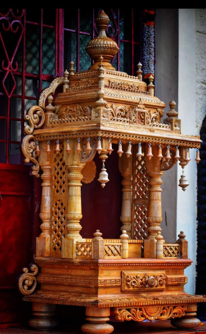 Handcrafted Home Pooja Temple with Bells