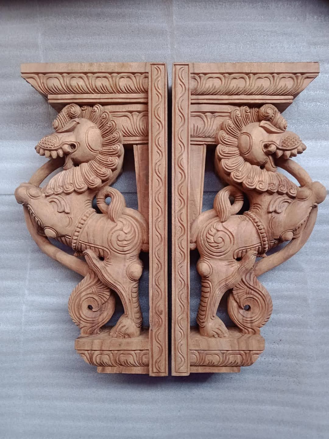 Be the first to review “Pair of Yali – South Indian Temple Wood Carving”