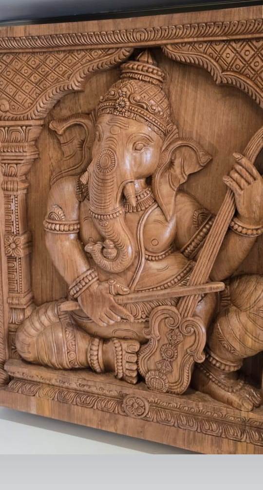 Wooden Carved God Ganesha Wall Panel