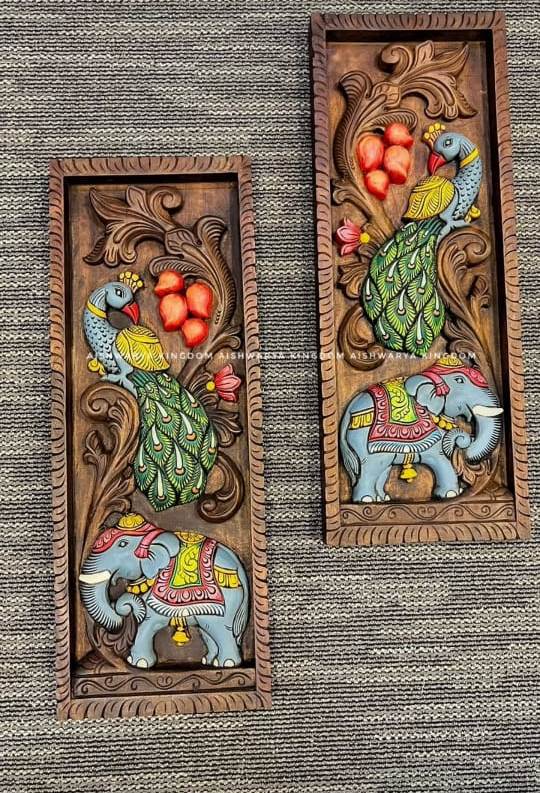 Wooden Peacock Carved Wall Panel